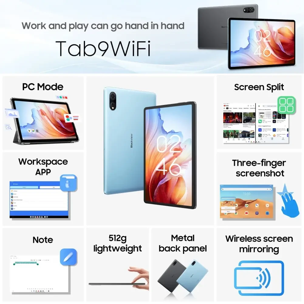 The Blackview 11" Tab offers a powerful tablet experience with a large, vibrant display and seamless performance. Equipped with an 11-inch Full HD screen, this tablet provides crisp visuals for streaming, gaming, and productivity. Powered by a fast octa-core processor, it ensures smooth multitasking and swift app navigation. With 64GB internal storage, expandable via a microSD card, and a long-lasting 6000mAh battery, the Blackview 11" Tab is built to keep you connected for longer periods. Specifications: