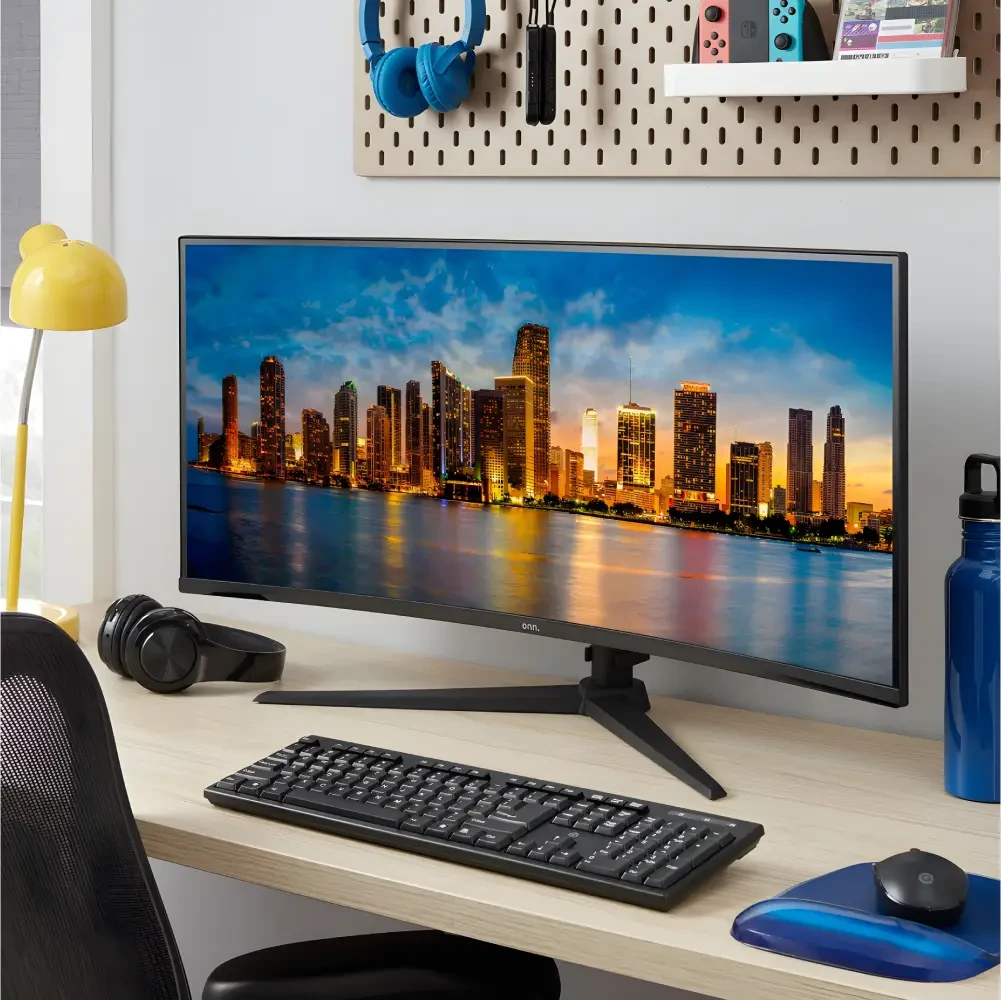 Elevate your workspace or gaming setup with the Curved Ultrawide Monitor, designed to deliver an immersive, panoramic viewing experience. With its 34-inch, 1440p resolution display and 21:9 aspect ratio, this monitor maximizes screen real estate, allowing you to multitask with ease or dive deeply into games and movies. The 1800R curvature wraps around your field of vision for more natural, comfortable viewing, reducing eye strain during extended sessions. Specifications:
