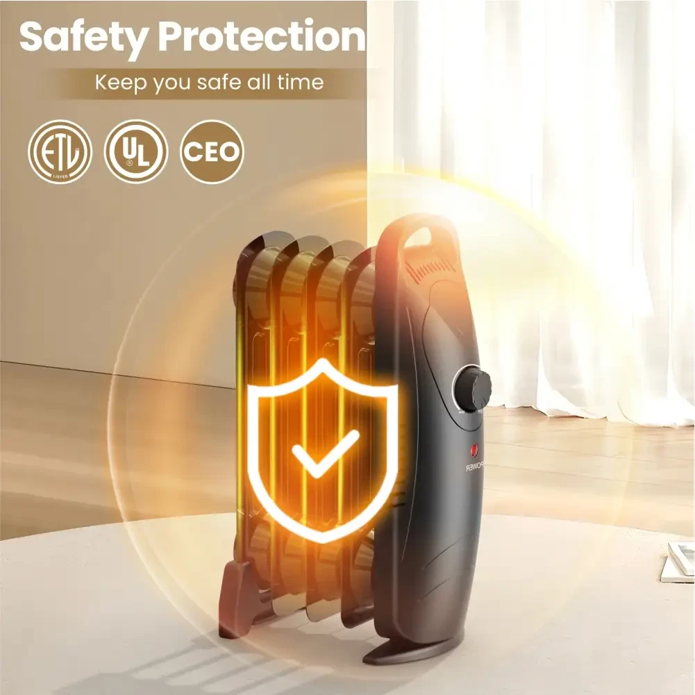 Keep cozy in any room with our compact Mini Oil Heater. This portable heater provides efficient, gentle warmth, perfect for small spaces like bedrooms, offices, or dorms. Designed with a sleek, modern profile, it fits neatly into tight corners and is easy to move with its built-in handle. Specifications:
