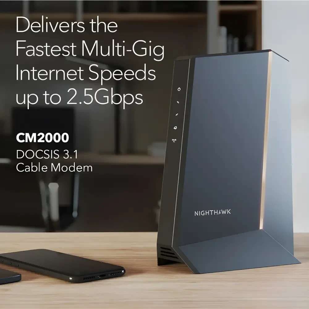 Upgrade your internet connection with the NETGEAR DOCSIS Cable Modem, a powerful modem that offers fast, reliable connectivity for smooth streaming, online gaming, and smart home functionality. Designed to deliver high-speed internet access to all your devices, this modem is compatible with most major cable providers and is ideal for plans up to 1 Gbps. Key Specifications: