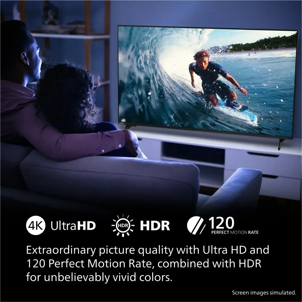 Upgrade your home entertainment system with the Philips 50" 4K Ultra HD TV – where technology meets visual artistry! |