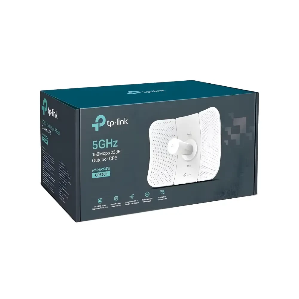 The TP-Link CPE605 is a high-performance outdoor CPE (Customer Premises Equipment) designed for point-to-point or point-to-multipoint wireless connections in challenging outdoor environments. Ideal for providing wireless internet access across large distances, the CPE605 is equipped with a powerful 2x2 MIMO antenna, providing a stable and long-range wireless signal. Whether you're setting up a remote office, extending network coverage, or creating a wireless bridge, the CPE605 offers a robust and reliable solution. Specifications: